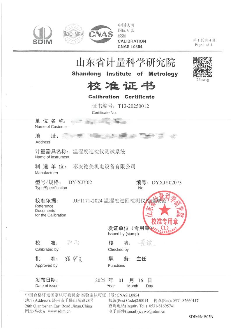 | 上一條:低溫浴式面源黑體爐(-50-80℃)校準(zhǔn)證書 | 下一條:廉金屬熱電偶檢定爐-校準(zhǔn)證書 |