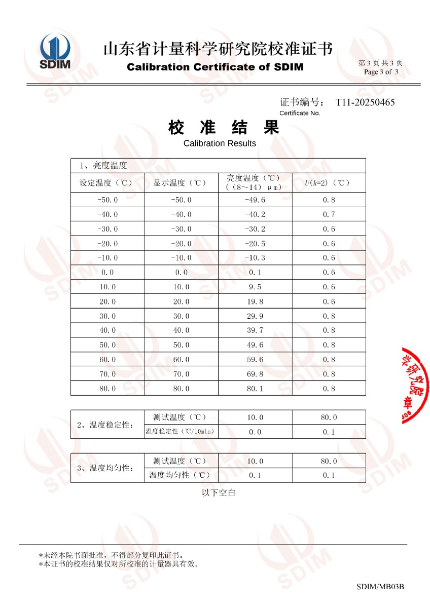 低溫浴式面源黑體爐(-50-80℃)校準(zhǔn)證書 2025-4-9 本文被閱讀 4689 次