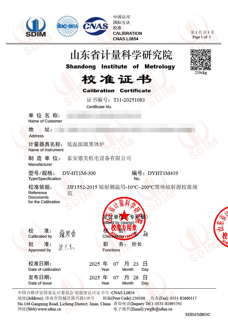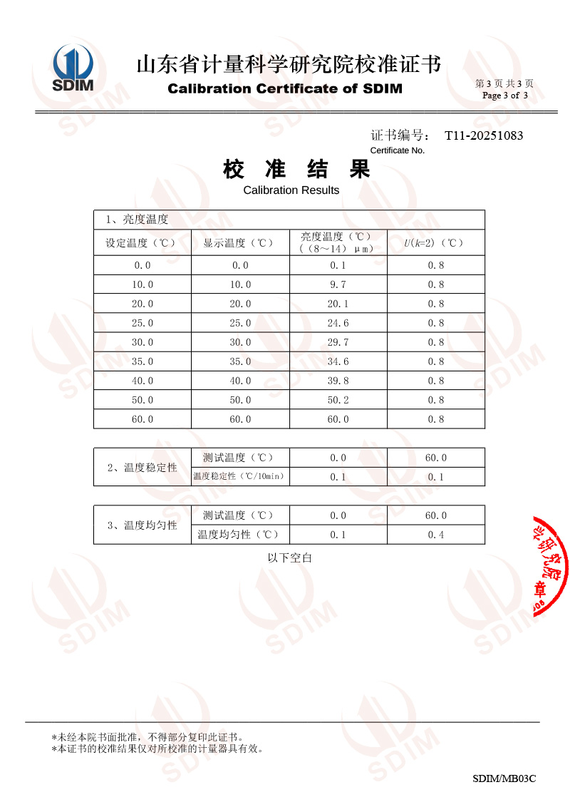 低溫面源黑體爐(0-60℃)校準(zhǔn)證書 2025-7-28 本文被閱讀 3659 次
