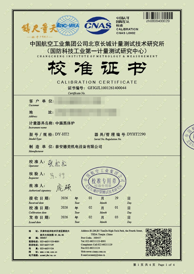 中溫黑體爐-校準(zhǔn)證書 2026-2-11 本文被閱讀 728 次
