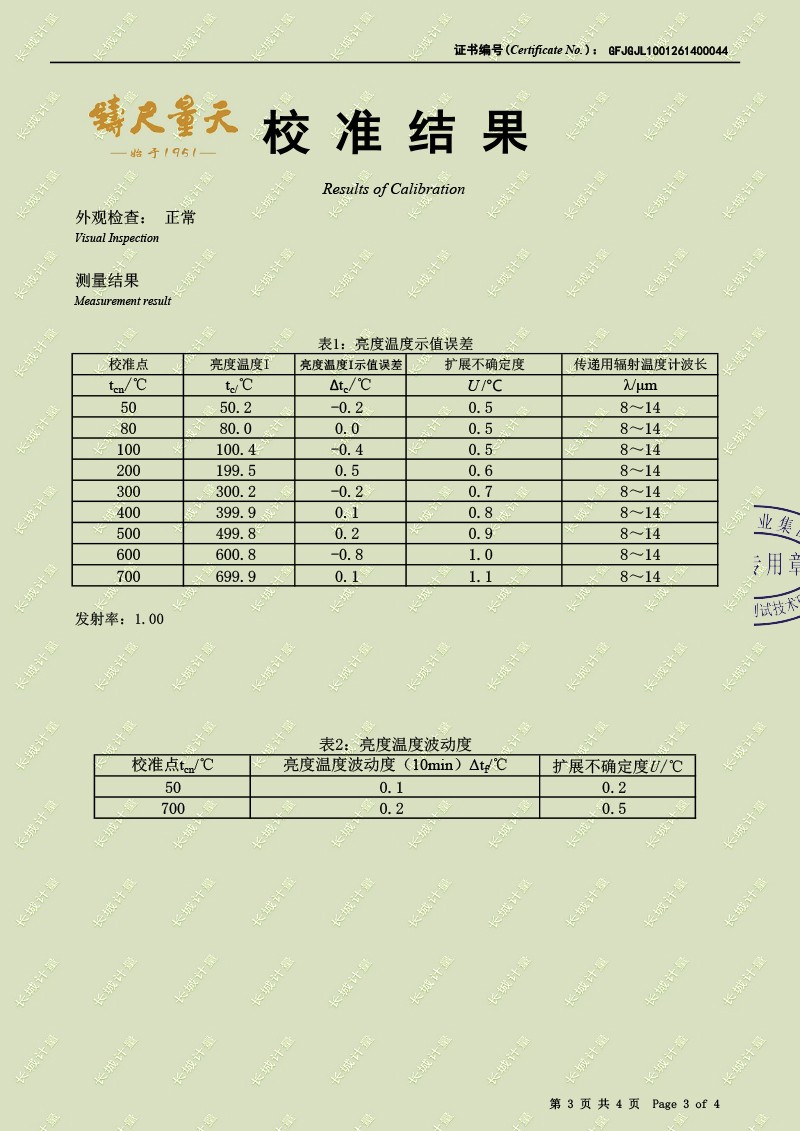 中溫黑體爐-校準(zhǔn)證書
