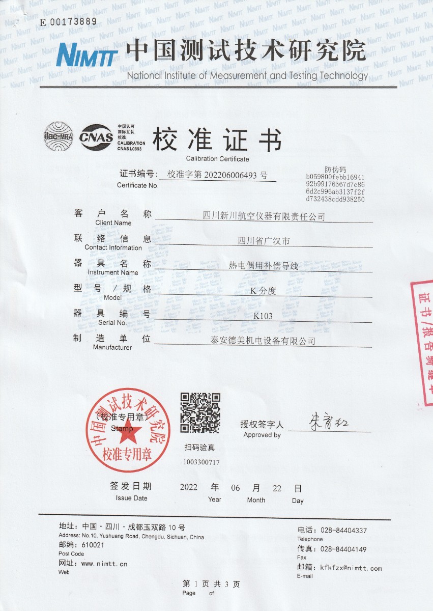 上一條:四川新川航空儀器有限責(zé)任公司-S分度補(bǔ)償導(dǎo)線下一條:廉金屬熱電偶檢定爐-校準(zhǔn)證書