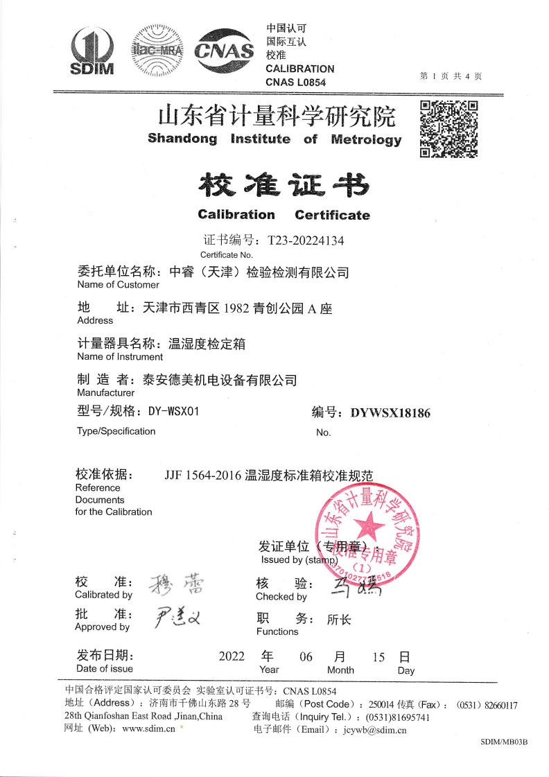 中睿(天津)檢驗(yàn)檢測有限公司-溫濕度檢定箱 2022-7-6 本文被閱讀 17648 次