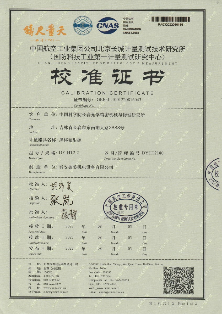 中國(guó)科學(xué)院長(zhǎng)春光學(xué)精密機(jī)械與物理研究所-黑體爐DY-HT2-2 2022-9-5 本文被閱讀 13836 次