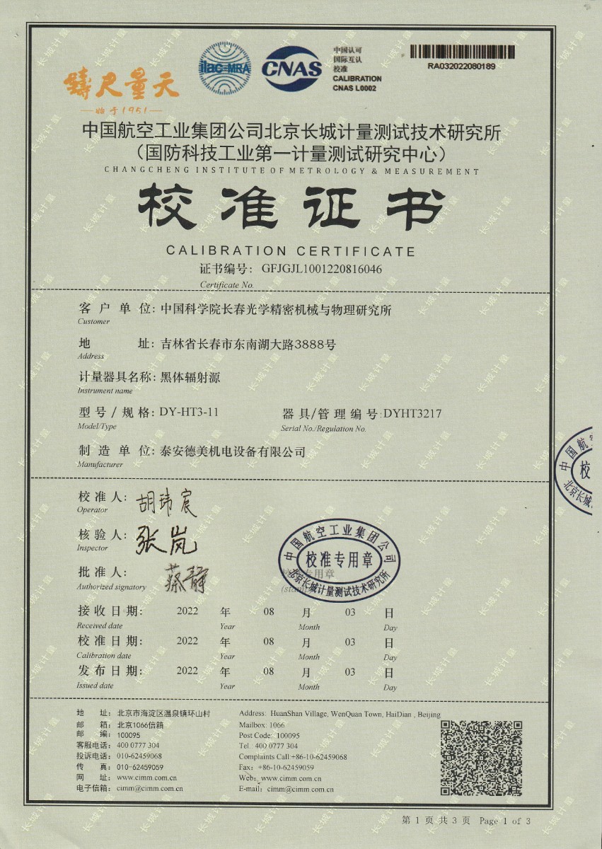 | 上一條:中國(guó)科學(xué)院長(zhǎng)春光學(xué)精密機(jī)械與物理研究所-黑體爐DY-HT3-2 | 下一條:廉金屬熱電偶檢定爐-校準(zhǔn)證書 |