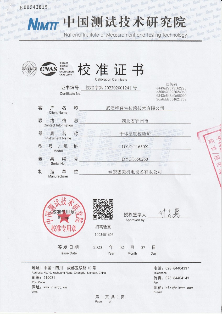 | 上一條:泰安德美機(jī)電設(shè)備有限公司 TRT4.82 精密輻射溫度計(jì) 校準(zhǔn)證書 | 下一條:廉金屬熱電偶檢定爐-校準(zhǔn)證書 |