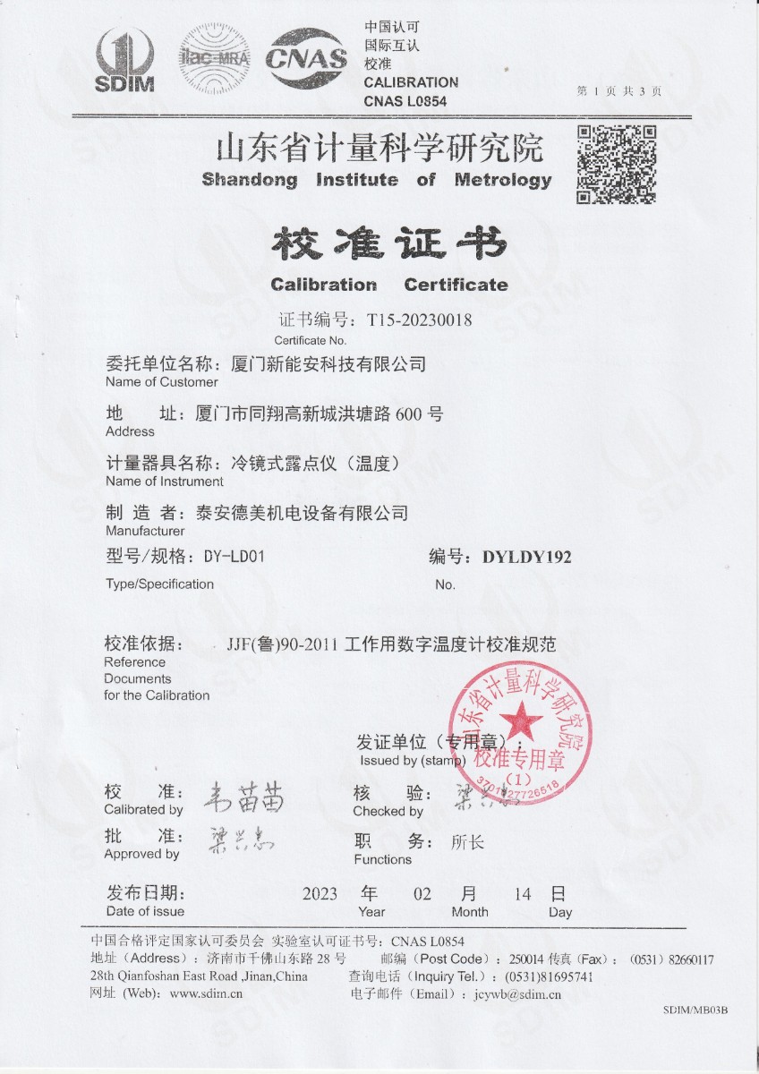 | 上一條:廈門新能安科技有限公司 冷鏡式露點儀 檢定證書 | 下一條:廉金屬熱電偶檢定爐-校準(zhǔn)證書 |