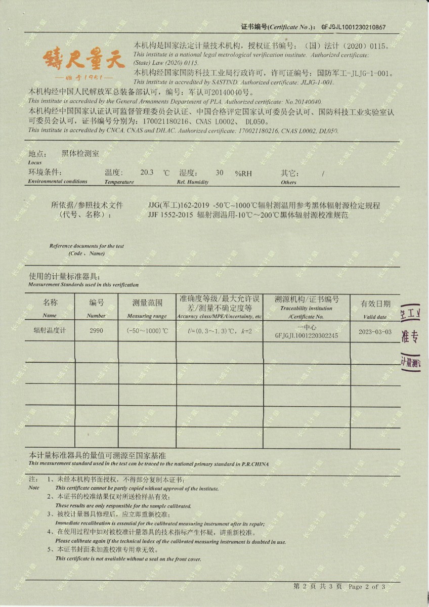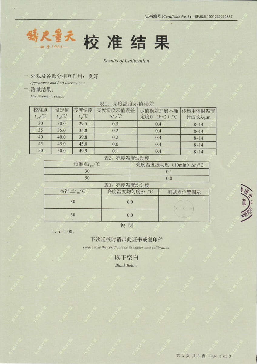 | 上一條:江蘇省產(chǎn)品質(zhì)量監(jiān)督檢驗(yàn)研究院 黑體輻射源 校準(zhǔn)證書 | 下一條:廉金屬熱電偶檢定爐-校準(zhǔn)證書 |