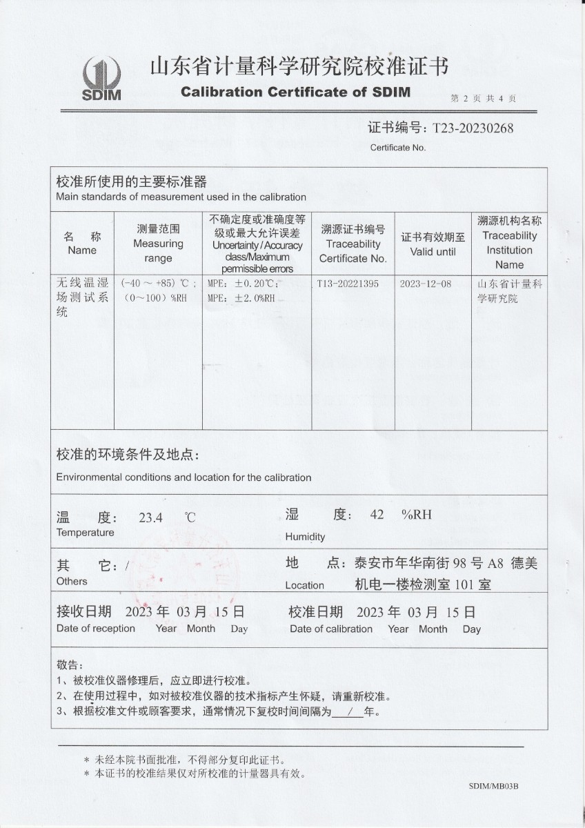 方圓檢測認證有限公司浙江金華分公司 溫濕度檢定箱校準證書 2023-3-25 本文被閱讀 15057 次