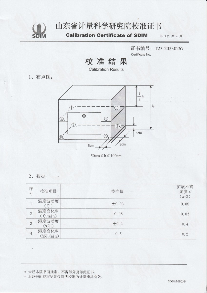 廣州南大康德信檢測技術(shù)有限公司 溫濕度檢定箱 校準(zhǔn)證書 2023-3-25 本文被閱讀 11386 次