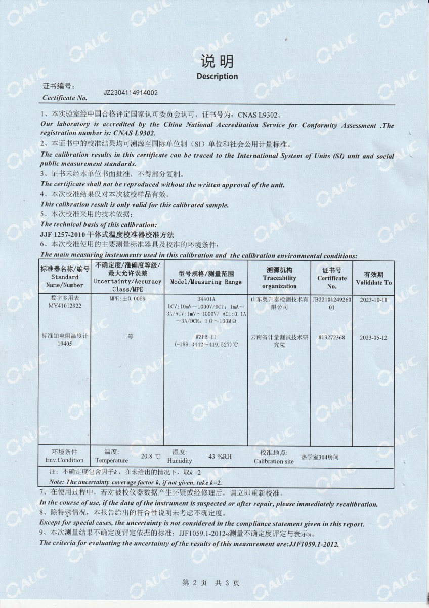 中財鋰膜(南京)有限公司 中溫干體爐 校準證書 2023-4-15 本文被閱讀 13806 次