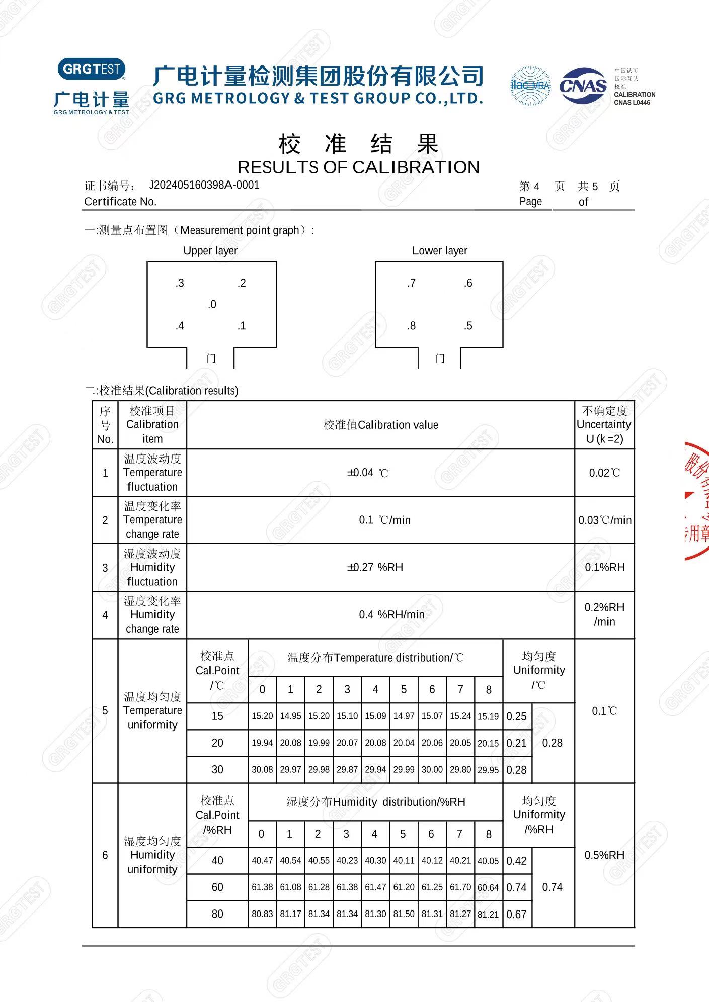 溫濕度檢定箱(-20-70℃)校準(zhǔn)證書(shū)