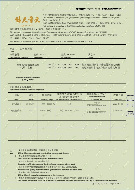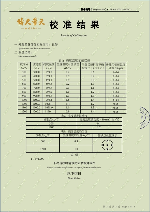 腔式黑體輻射源(300-1200℃)304所證書 2024-6-18 本文被閱讀 7527 次