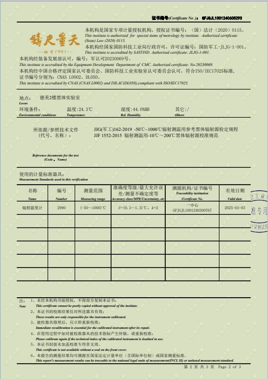黑體輻射源(50-700℃)304所校準證書 2024-6-18 本文被閱讀 8375 次