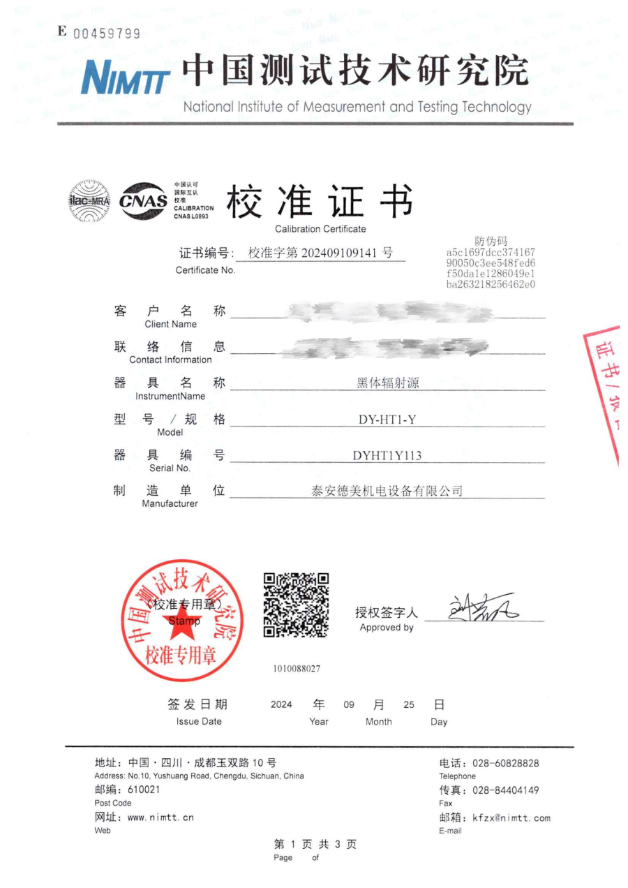 浴式黑體校準證書 2024-10-21 本文被閱讀 8619 次