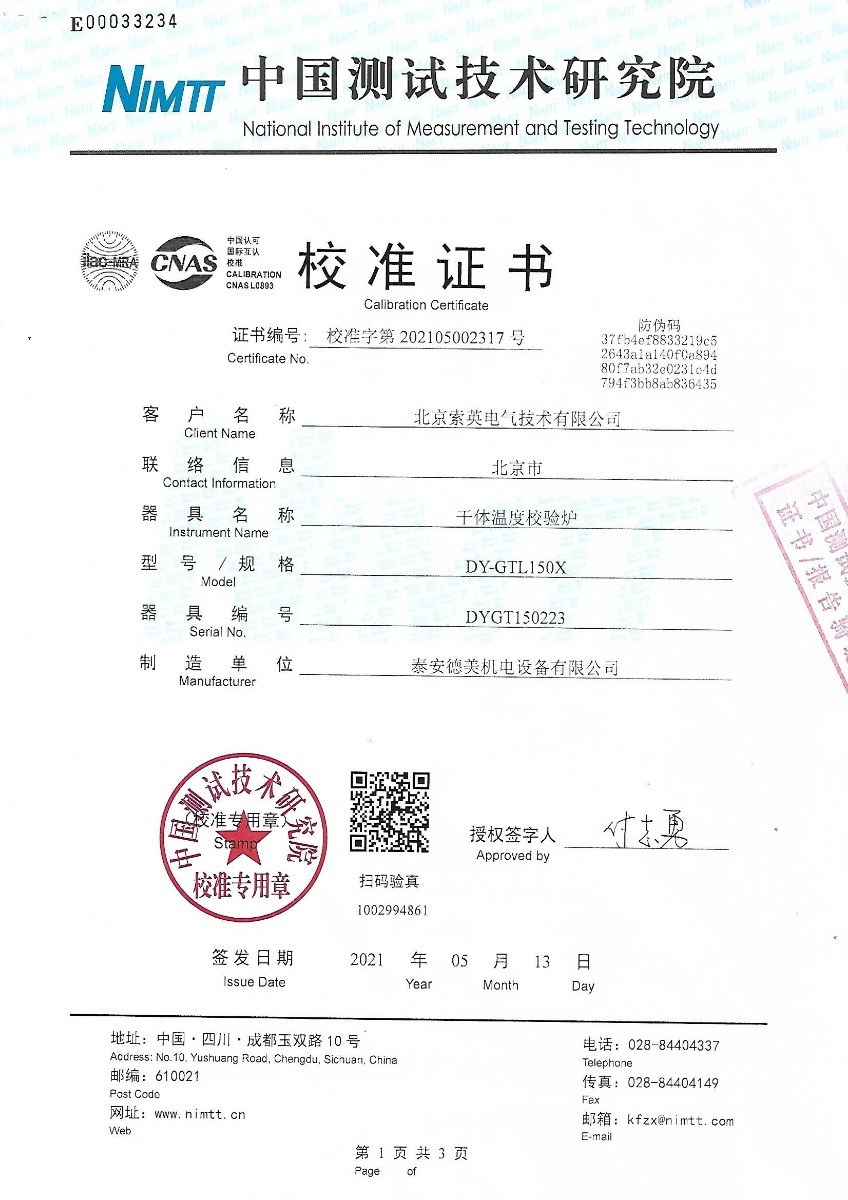 北京索英電氣技術(shù)有限公司-干體溫度校驗爐 2021-5-17 本文被閱讀 18553 次