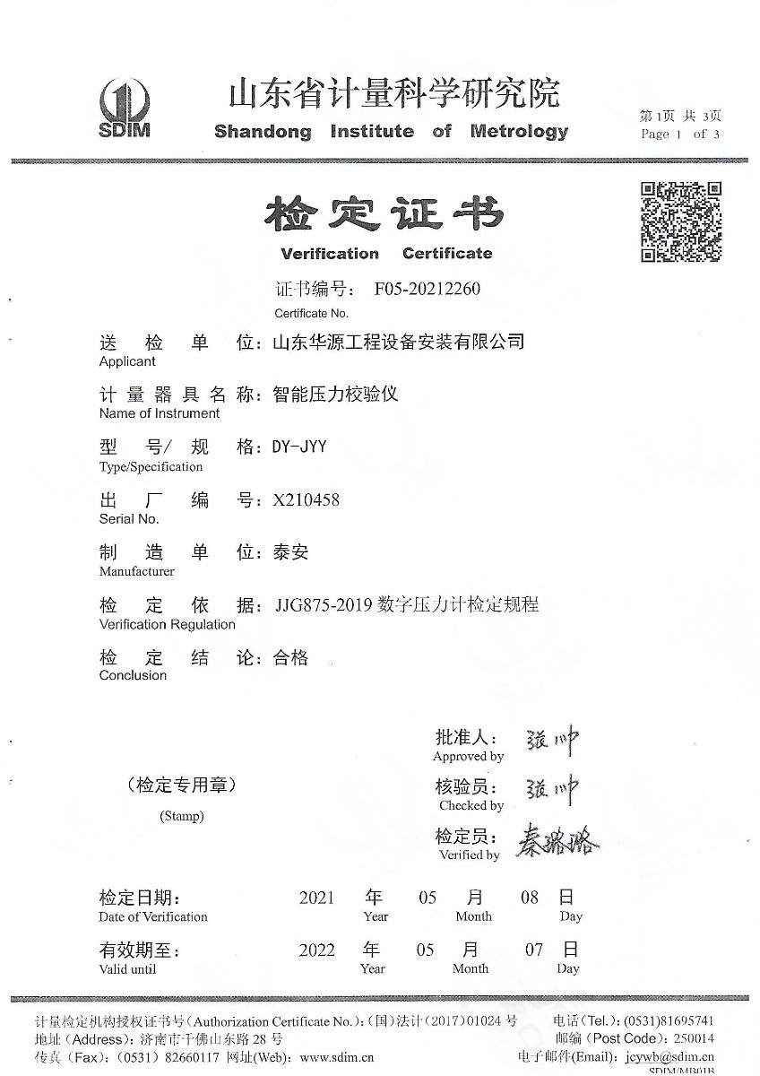 | 上一條:山東華源工程設(shè)備安裝有限公司-智能壓力校驗(yàn)儀X210457 | 下一條:廉金屬熱電偶檢定爐-校準(zhǔn)證書(shū) |