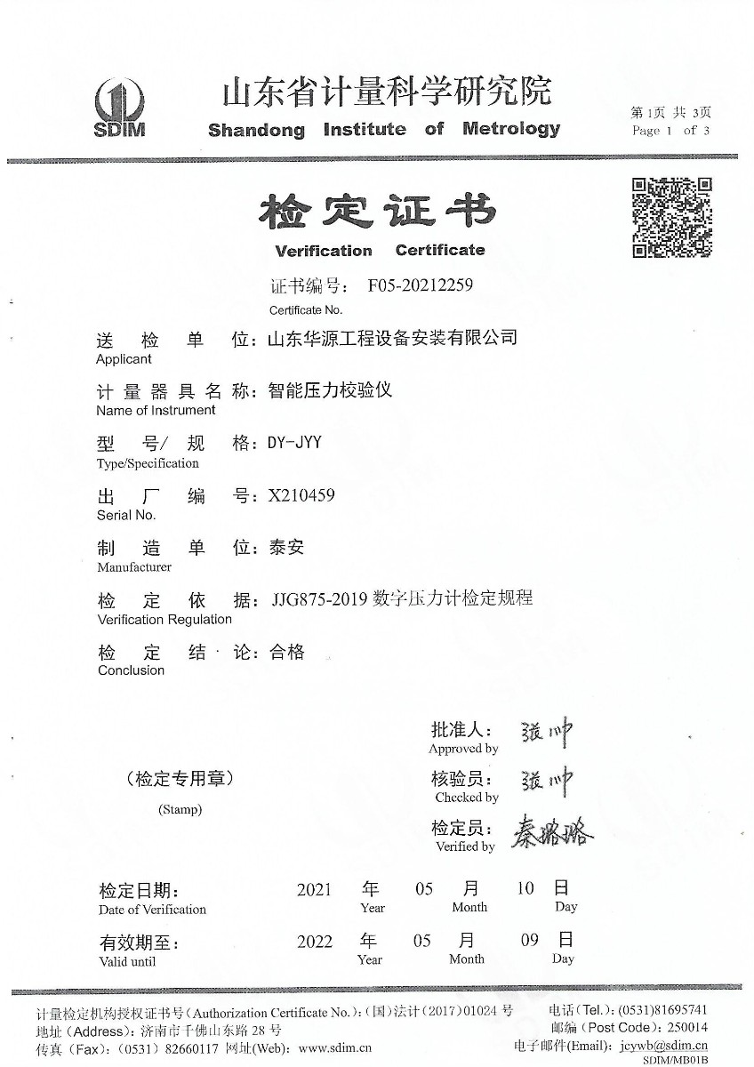 | 上一條:山東華源工程設(shè)備安裝有限公司-智能壓力校驗(yàn)儀X210458 | 下一條:廉金屬熱電偶檢定爐-校準(zhǔn)證書 |