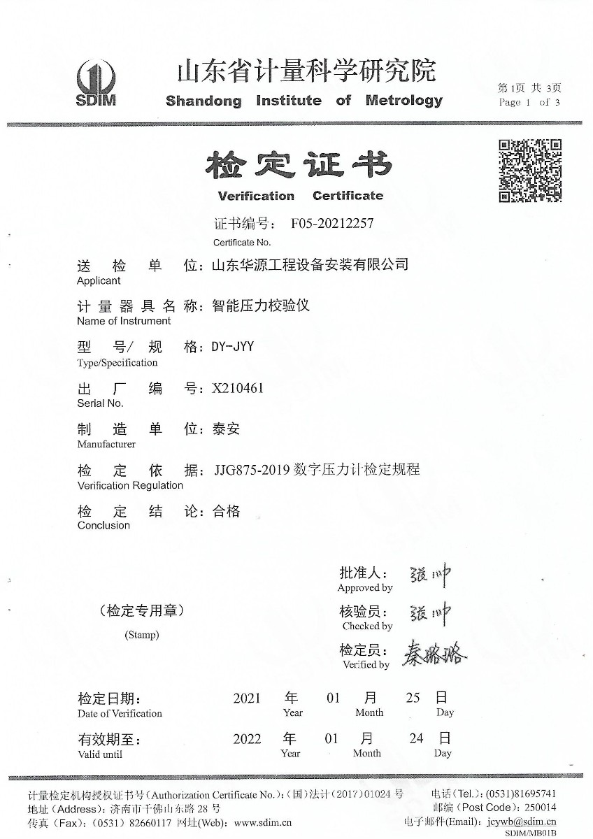 | 上一條:山東華源工程設(shè)備安裝有限公司-智能壓力校驗(yàn)儀X210460 | 下一條:廉金屬熱電偶檢定爐-校準(zhǔn)證書(shū) |