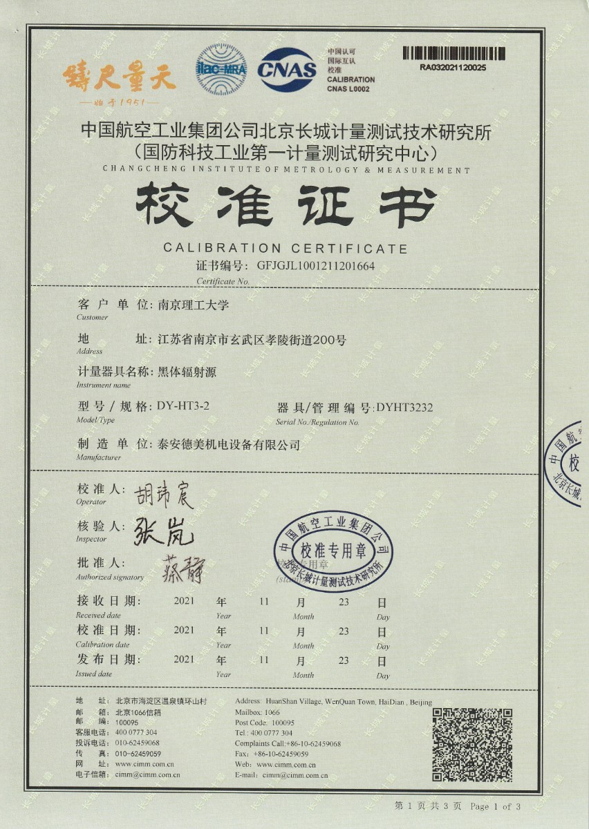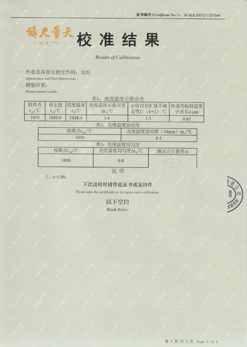 | 上一條:南京理工大學(xué)-黑體輻射源校準(zhǔn)證書600℃ | 下一條:廉金屬熱電偶檢定爐-校準(zhǔn)證書 |