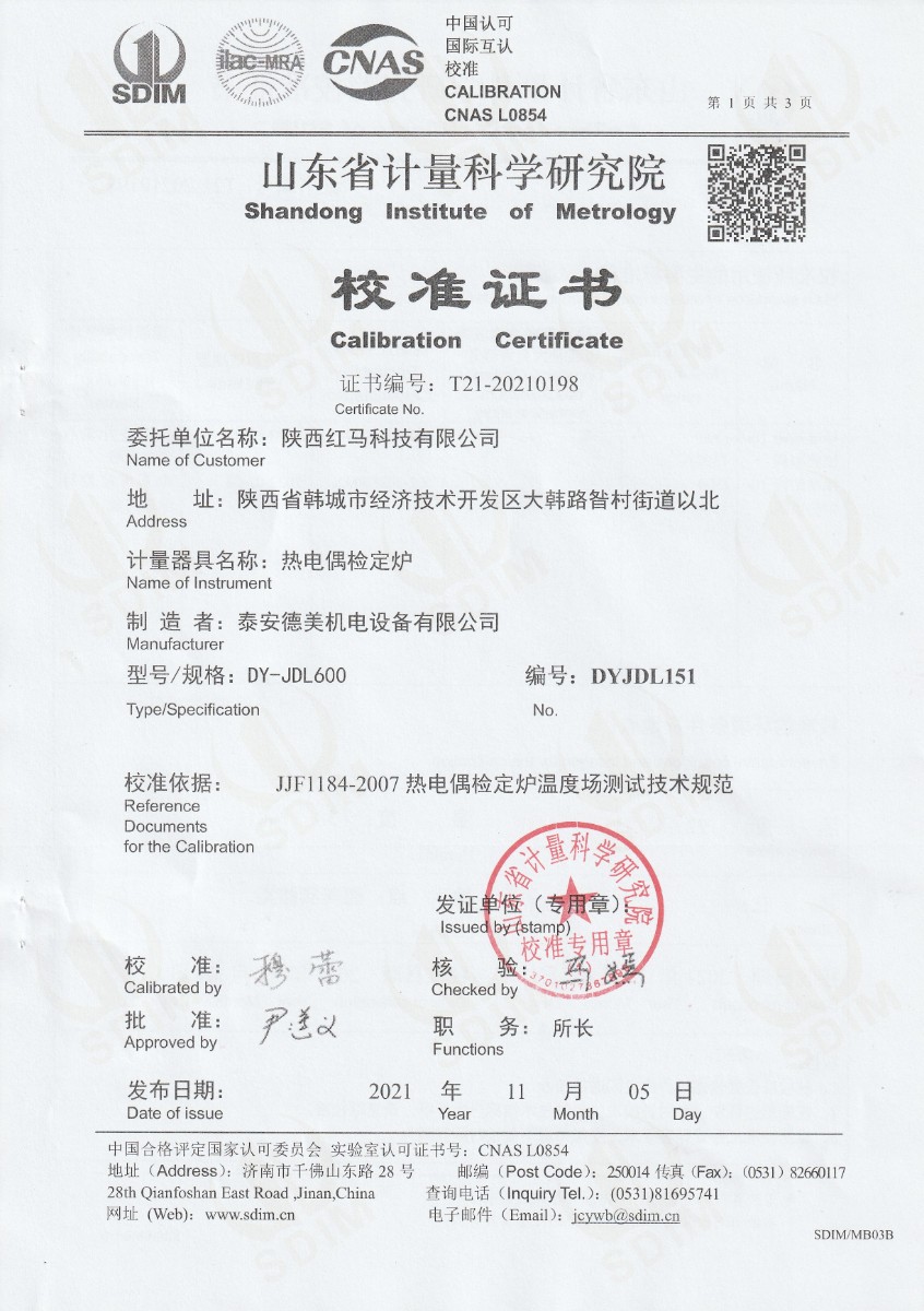 陜西紅馬有限公司-熱電偶檢定爐 2021-12-27 本文被閱讀 15322 次