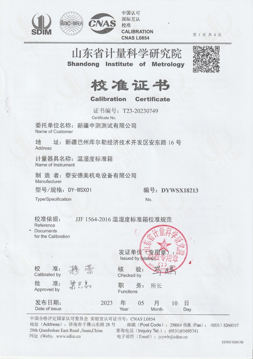 | 上一條:越南晶科能源實業(yè)有限責(zé)任公司 溫濕度標(biāo)準(zhǔn)箱 校準(zhǔn)證書 | 下一條:廉金屬熱電偶檢定爐-校準(zhǔn)證書 |