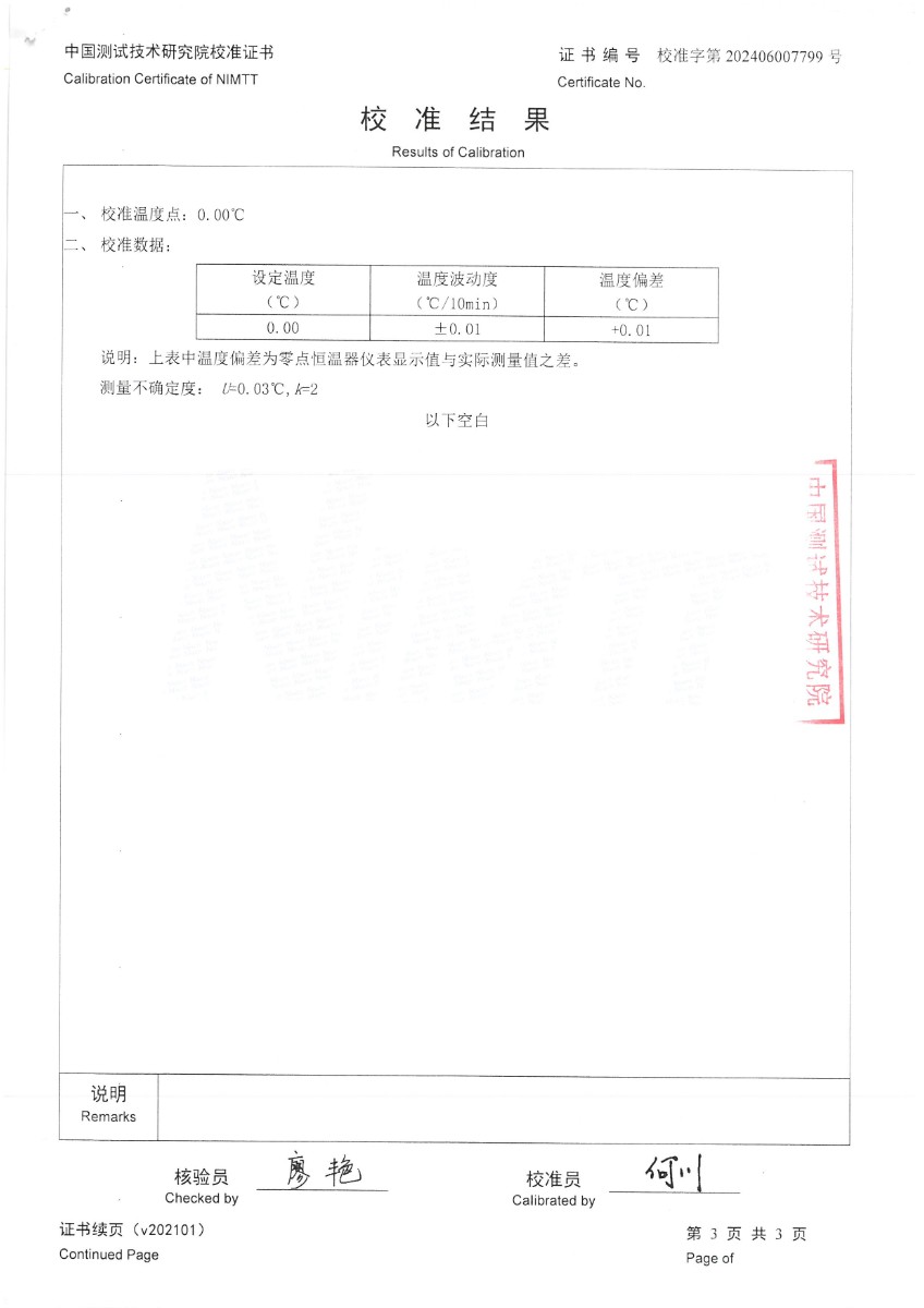 零點(diǎn)恒溫器校準(zhǔn)證書(shū)