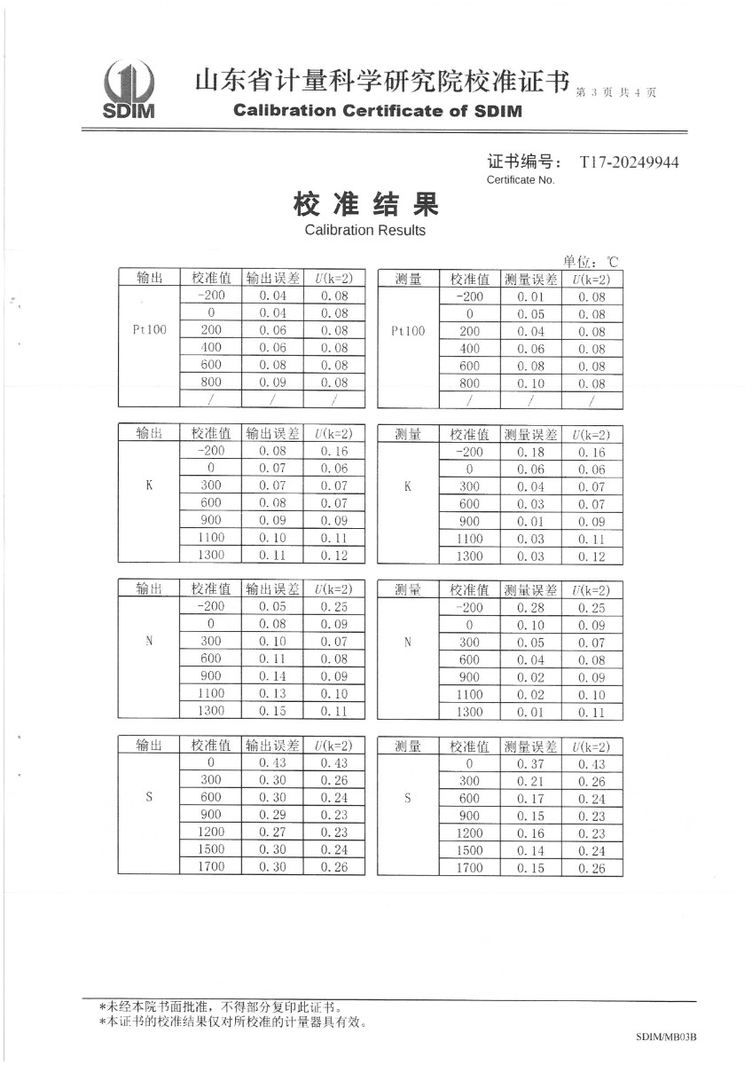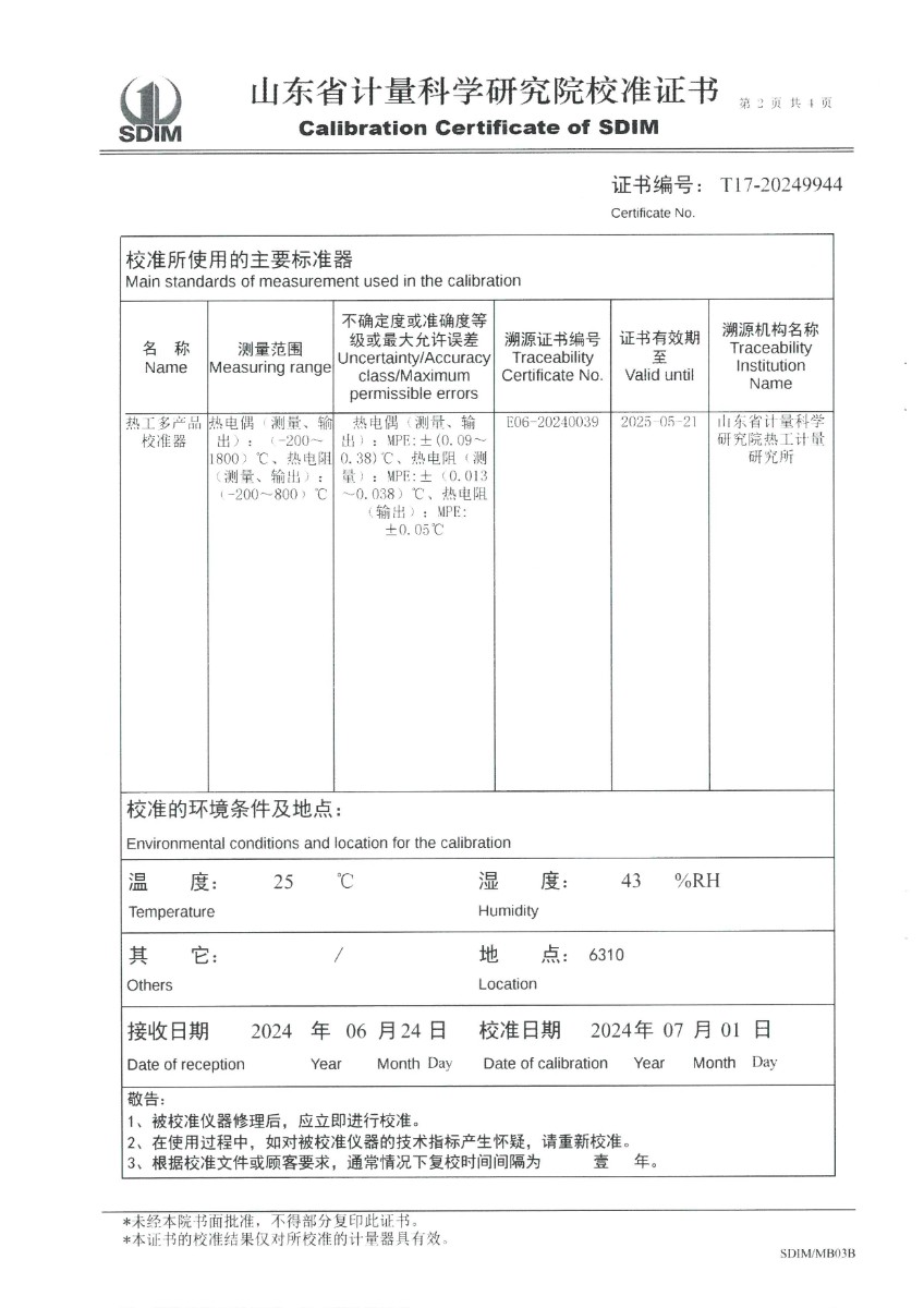 | 上一條:水三相點瓶凍制保存裝置(-20~95℃)校準(zhǔn)證書 | 下一條:廉金屬熱電偶檢定爐-校準(zhǔn)證書 |