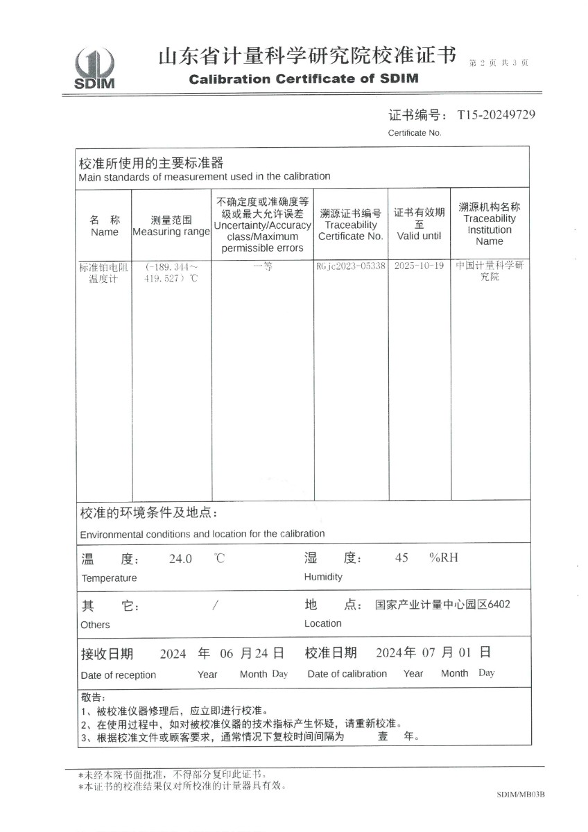 | 上一條:便攜式過程校驗儀(-200~1800℃)校準(zhǔn)證書 | 下一條:廉金屬熱電偶檢定爐-校準(zhǔn)證書 |