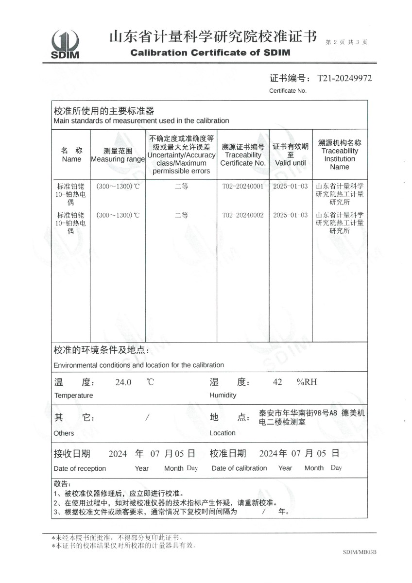 熱電偶檢定爐(300~1200℃)校準(zhǔn)證書 2024-7-11 本文被閱讀 7418 次