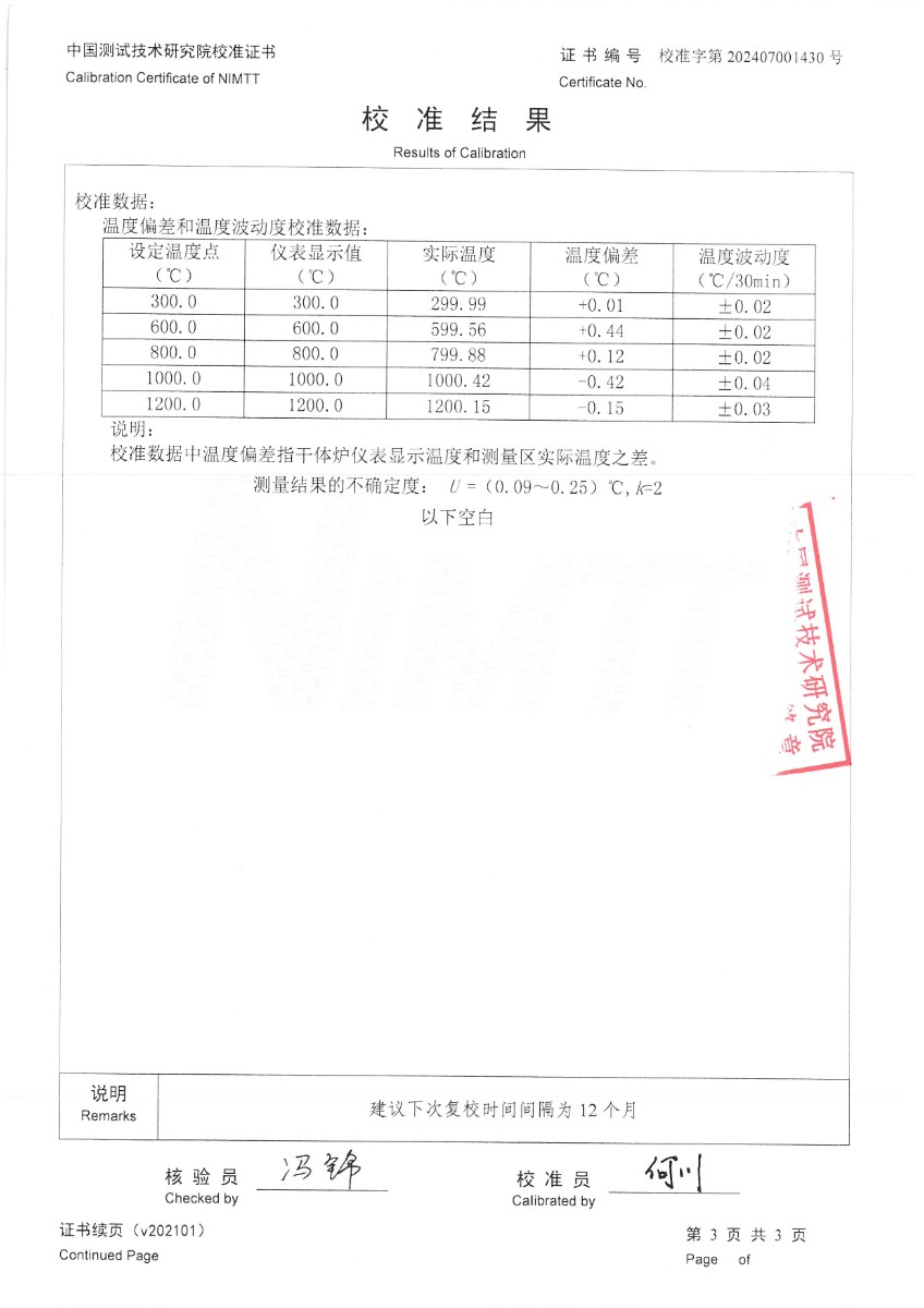 | 上一條:熱電偶檢定爐(300~1200℃)校準(zhǔn)證書 | 下一條:廉金屬熱電偶檢定爐-校準(zhǔn)證書 |