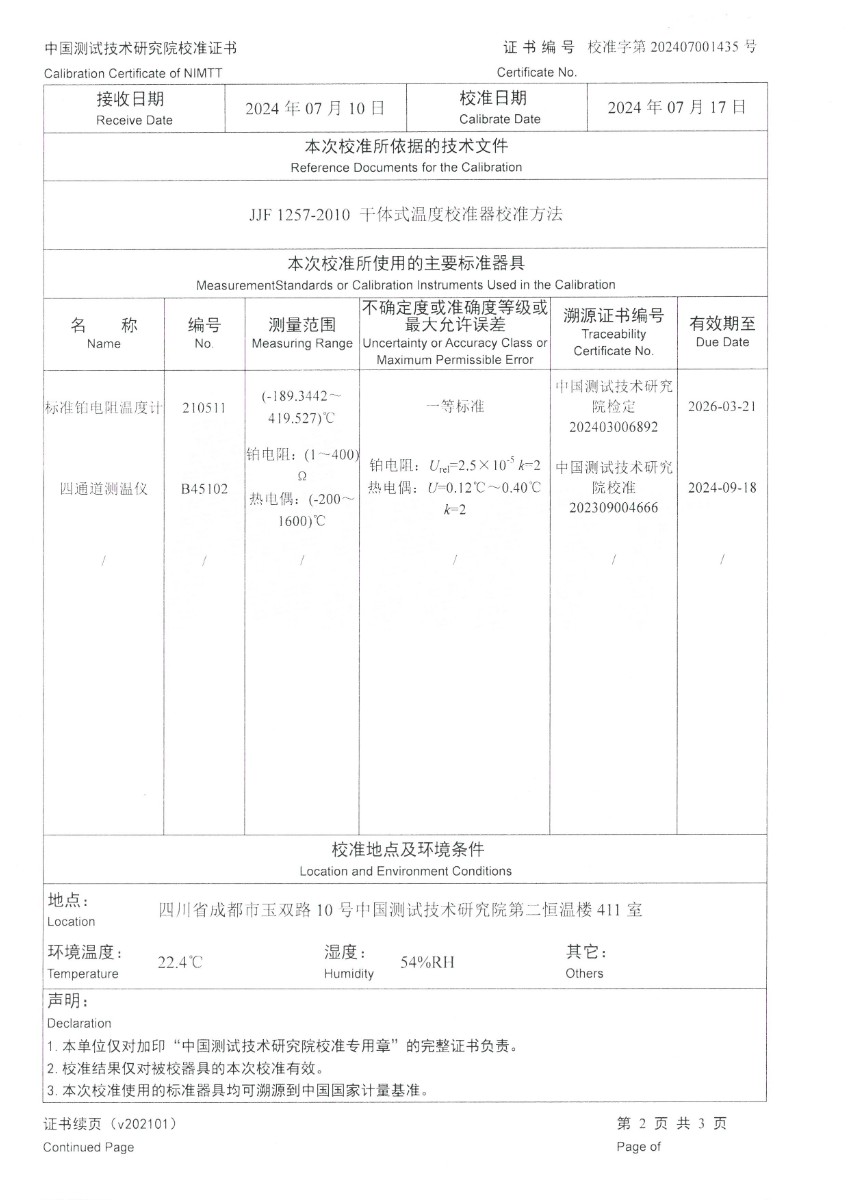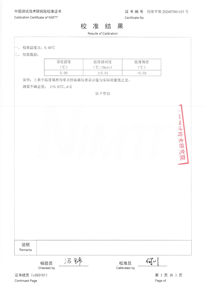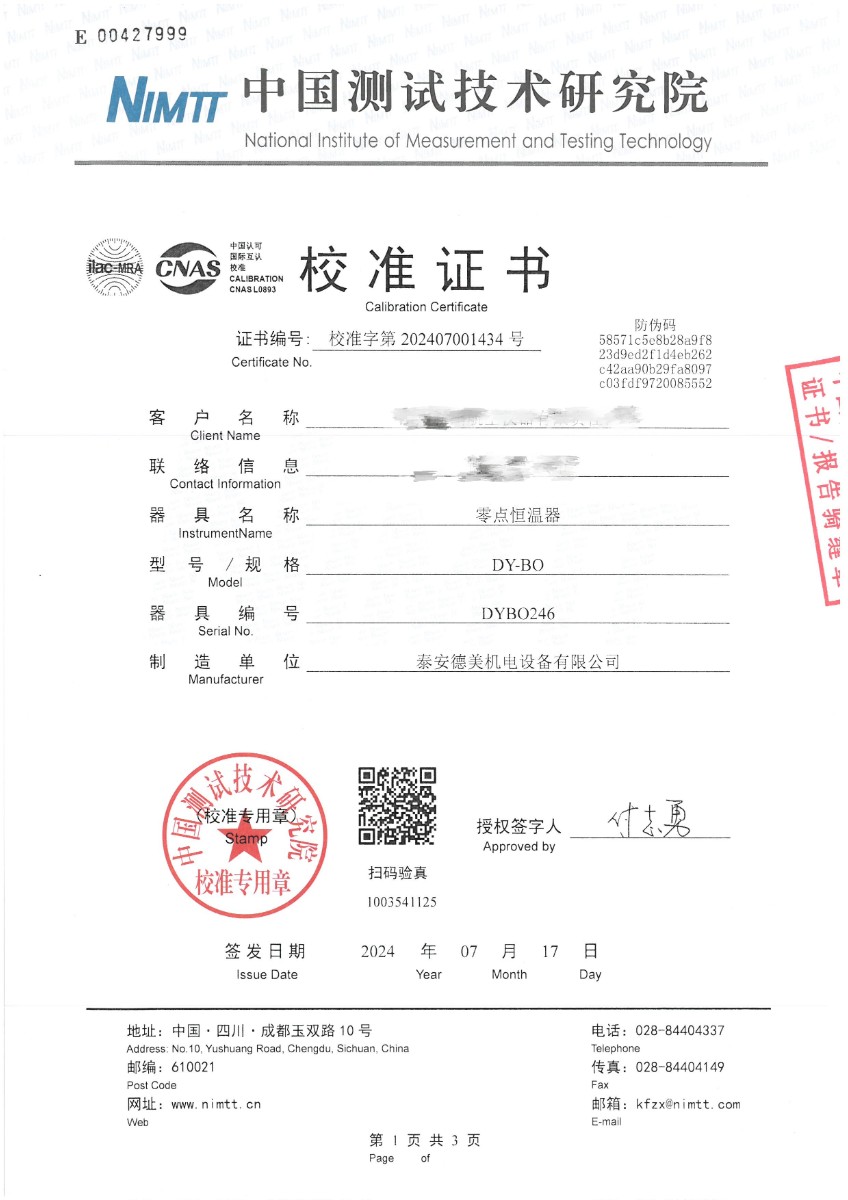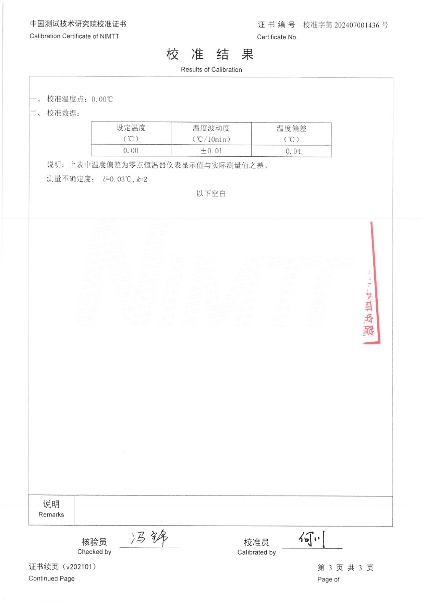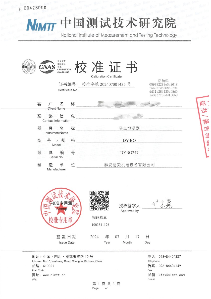 零點恒溫器校準(zhǔn)證書 2024-7-19 本文被閱讀 7592 次