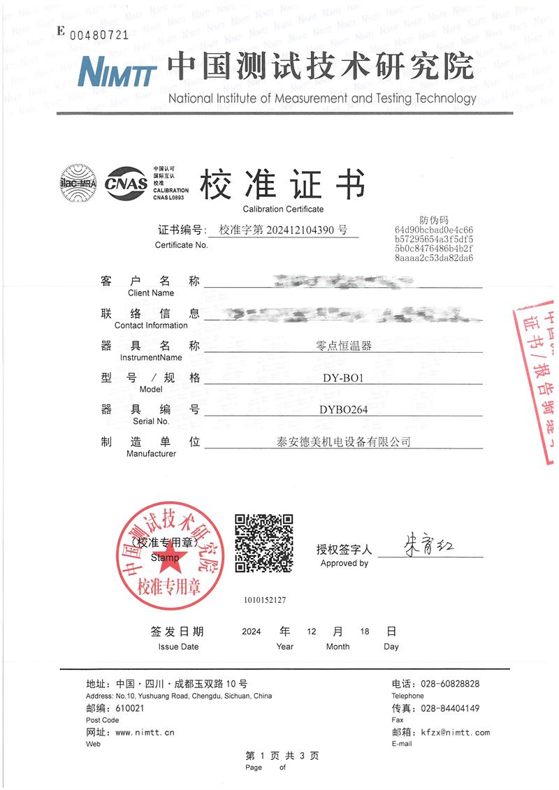零點(diǎn)恒溫器校準(zhǔn)證書 2024-12-20 本文被閱讀 7411 次