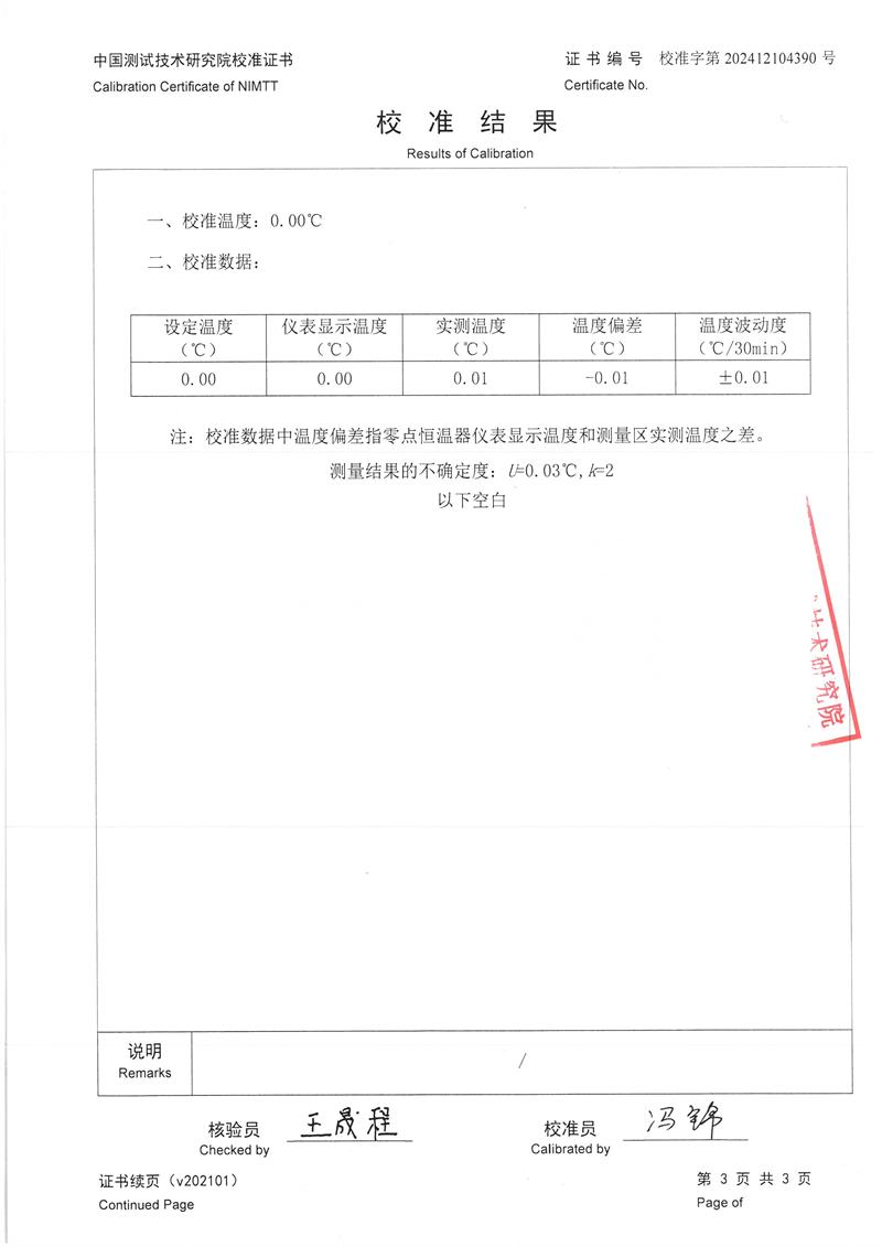零點(diǎn)恒溫器校準(zhǔn)證書