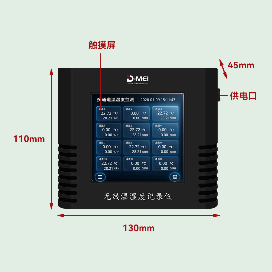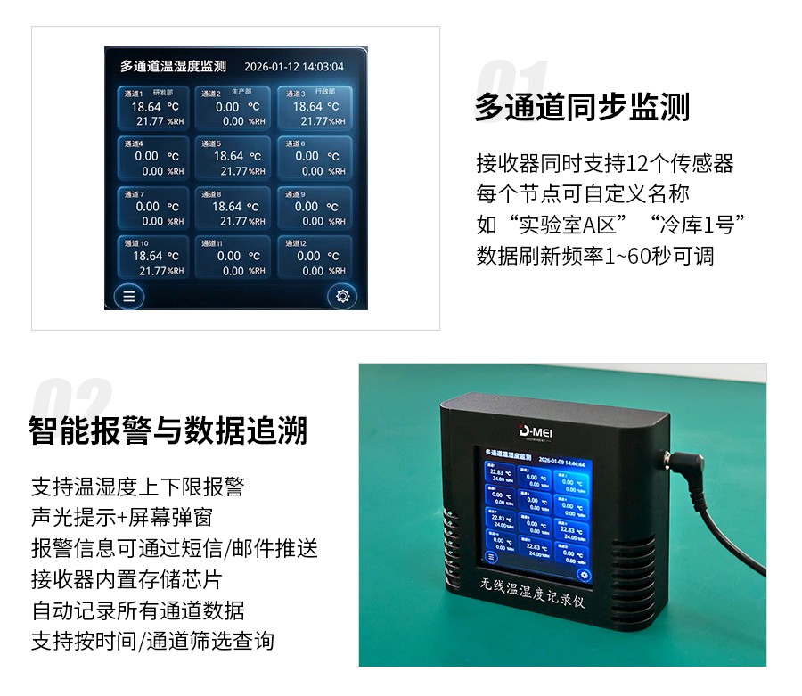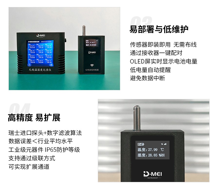 無(wú)線溫濕度采集系統(tǒng)是一款高精度、多通道、易部署的環(huán)境監(jiān)測(cè)解決方案,由無(wú)線溫濕度傳感器和無(wú)線接收器兩部分組成。系統(tǒng)采用瑞士Sensirion原裝溫濕度探頭,結(jié)合2.4G無(wú)線通信技術(shù)與工業(yè)級(jí)顯示模塊,支持多只傳感器同步監(jiān)測(cè),適用于實(shí)驗(yàn)室、倉(cāng)儲(chǔ)、農(nóng)業(yè)大棚、機(jī)房等多場(chǎng)景的溫濕度實(shí)時(shí)監(jiān)控與數(shù)據(jù)追溯。
