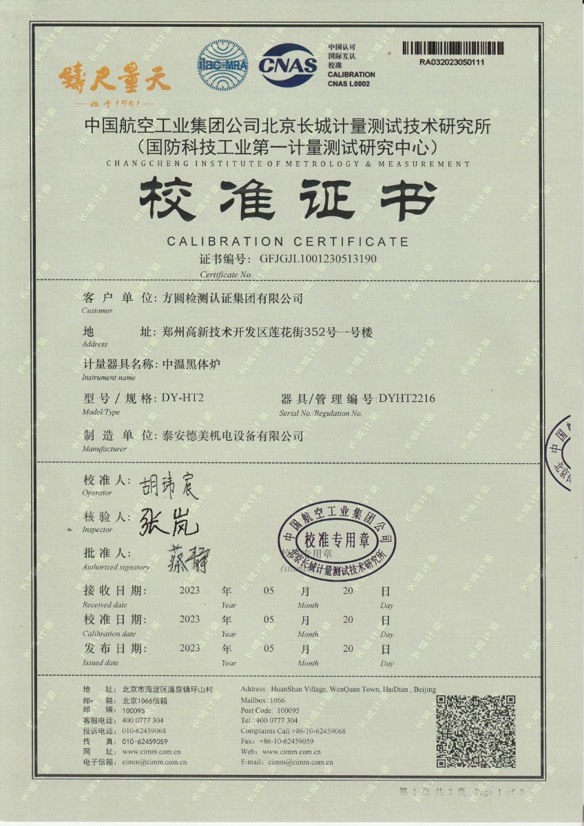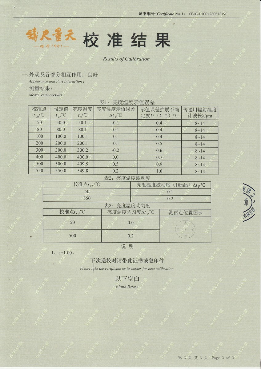 | 上一條:山東凱利布森測控技術(shù)有限公司 耳溫空腔(黑體輻射源) 校準(zhǔn)證書 | 下一條:廉金屬熱電偶檢定爐-校準(zhǔn)證書 |