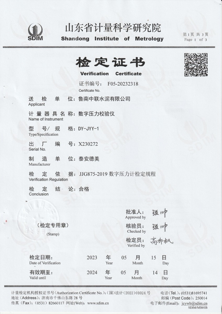 魯南中聯(lián)水泥有新公司-數(shù)字壓力校驗儀 2023-6-7 本文被閱讀 12315 次
