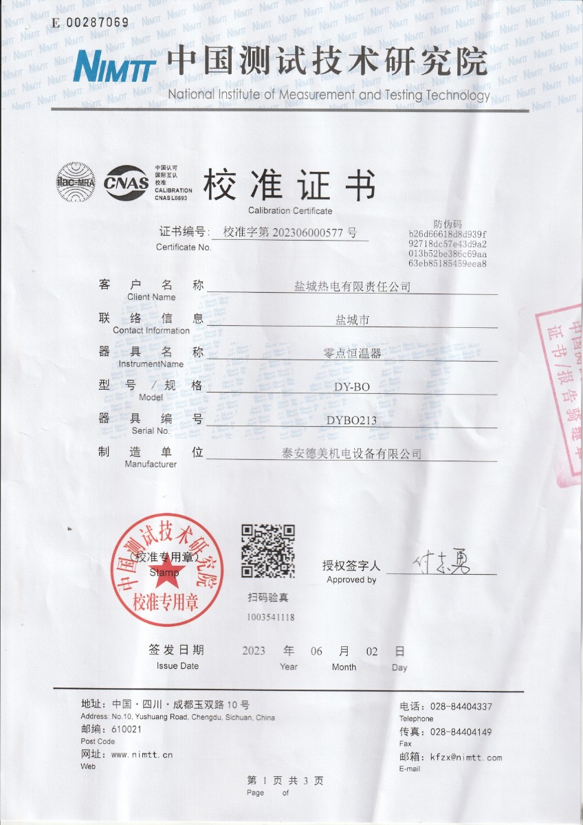 鹽城熱電有限責(zé)任公司-零點恒溫器 2023-6-9 本文被閱讀 19348 次