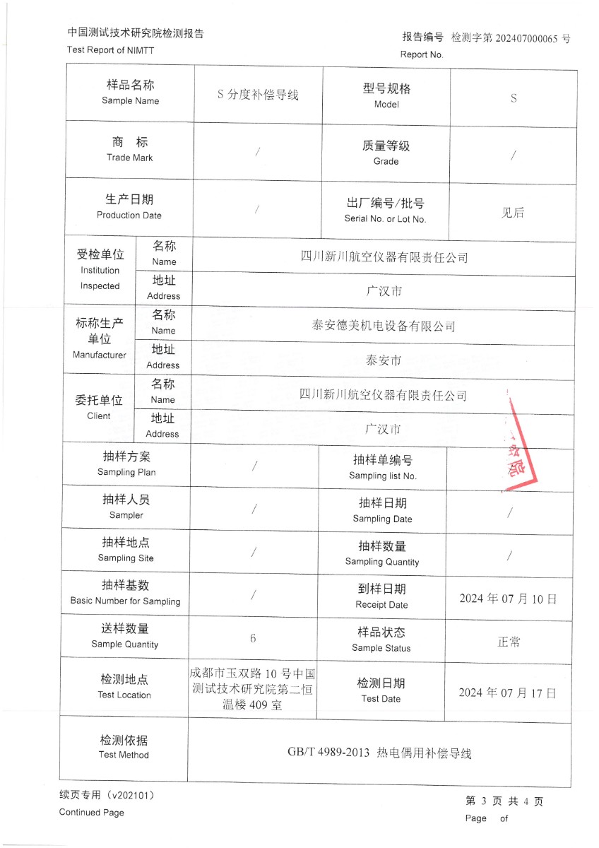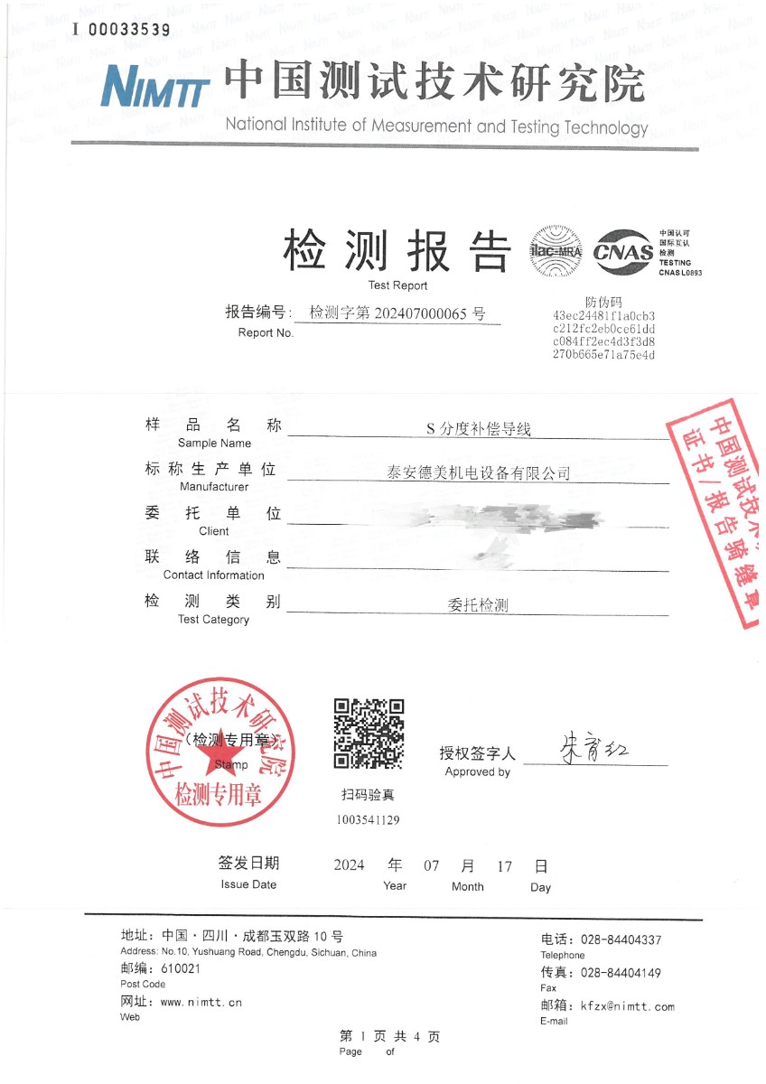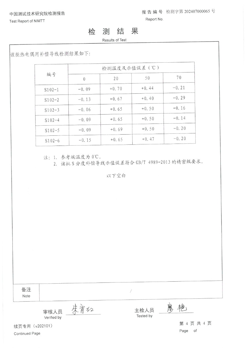 | 上一條:熱電偶用補(bǔ)償導(dǎo)線K分度校準(zhǔn)證書 | 下一條:廉金屬熱電偶檢定爐-校準(zhǔn)證書 |