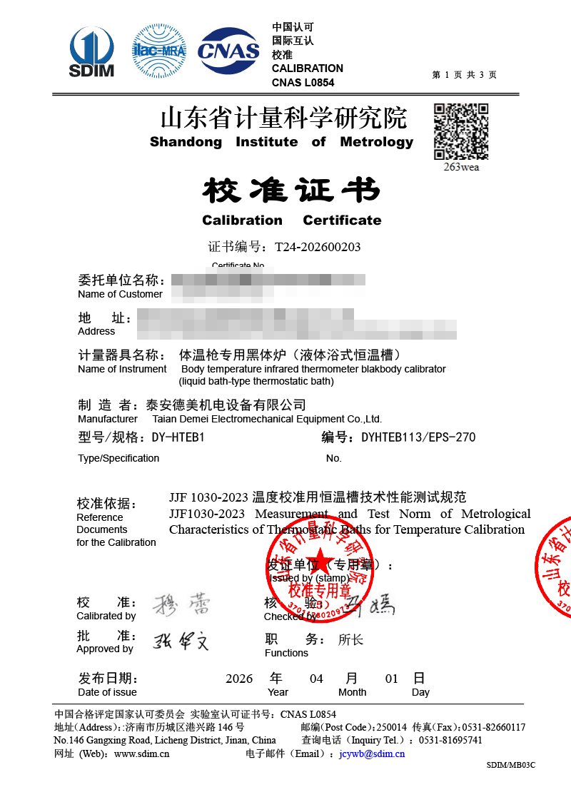 體溫專用黑體爐-校準證書 2026-4-11 本文被閱讀 15 次