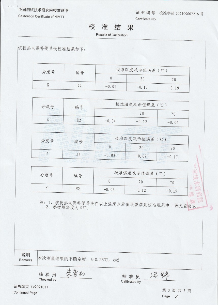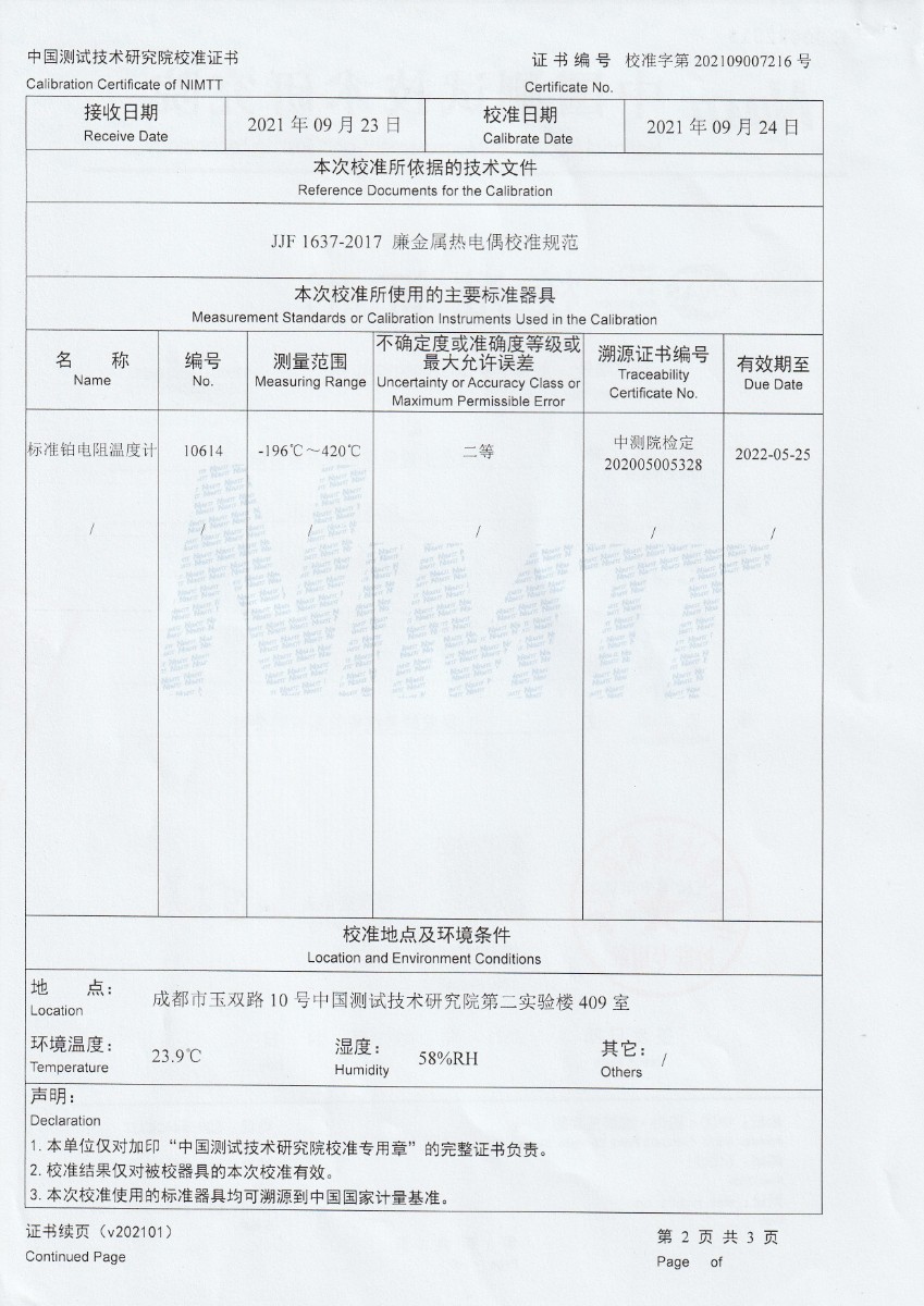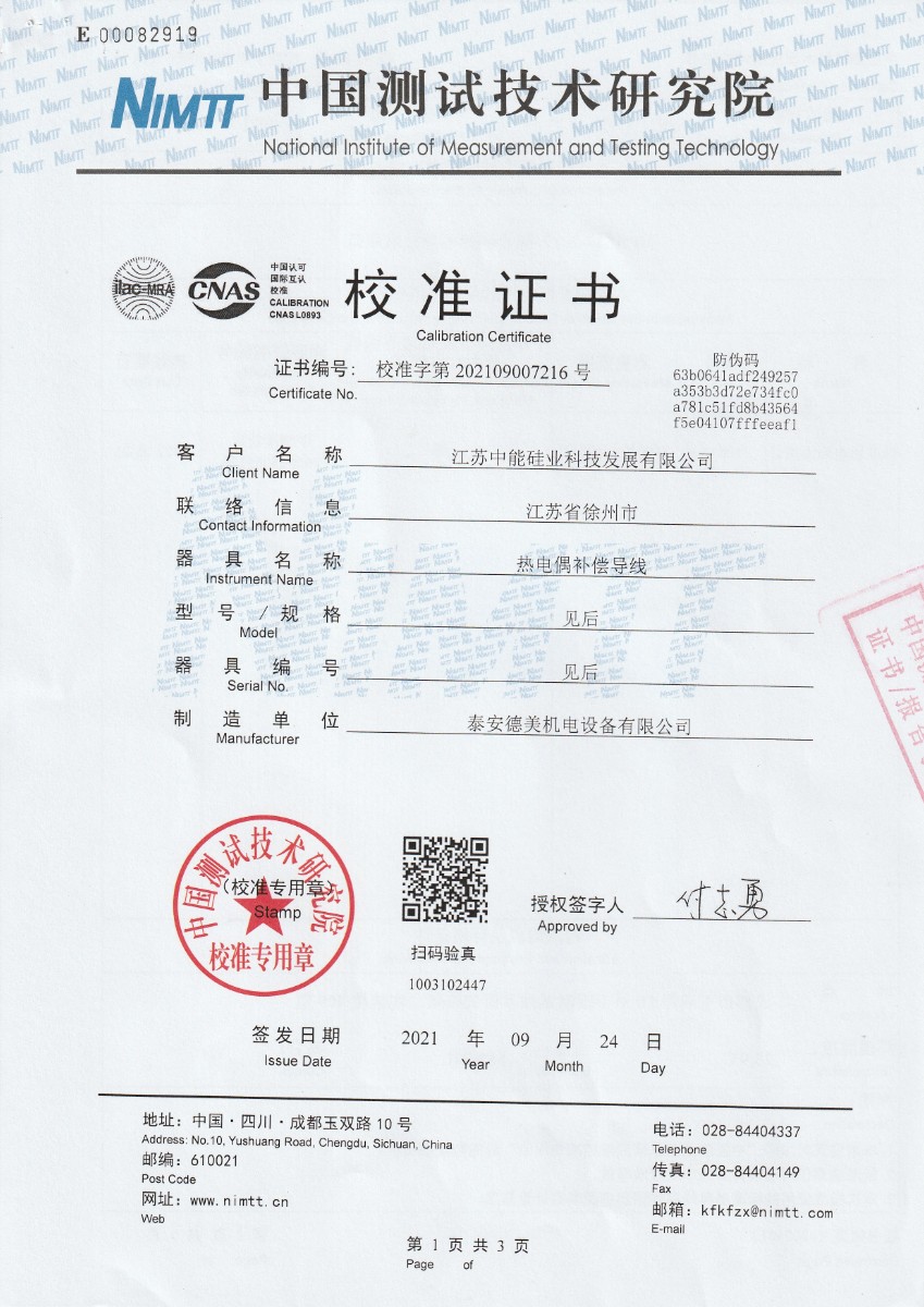 | 上一條:江蘇中能硅業(yè)科技發(fā)展有限公司-零度恒溫器 | 下一條:廉金屬熱電偶檢定爐-校準(zhǔn)證書(shū) |