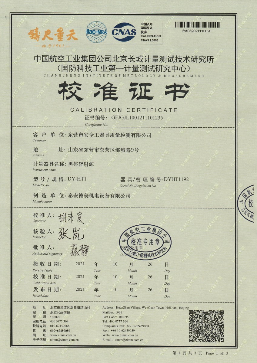 | 上一條:浙江泰林生命科學(xué)有限公司-精密數(shù)字壓力表 | 下一條:廉金屬熱電偶檢定爐-校準(zhǔn)證書 |