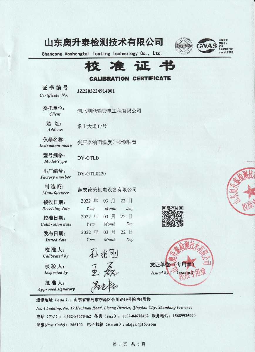 湖北荊能輸變電工程有限公司-變壓器油面溫度計(jì)檢測(cè)裝置 2022-3-28 本文被閱讀 17404 次