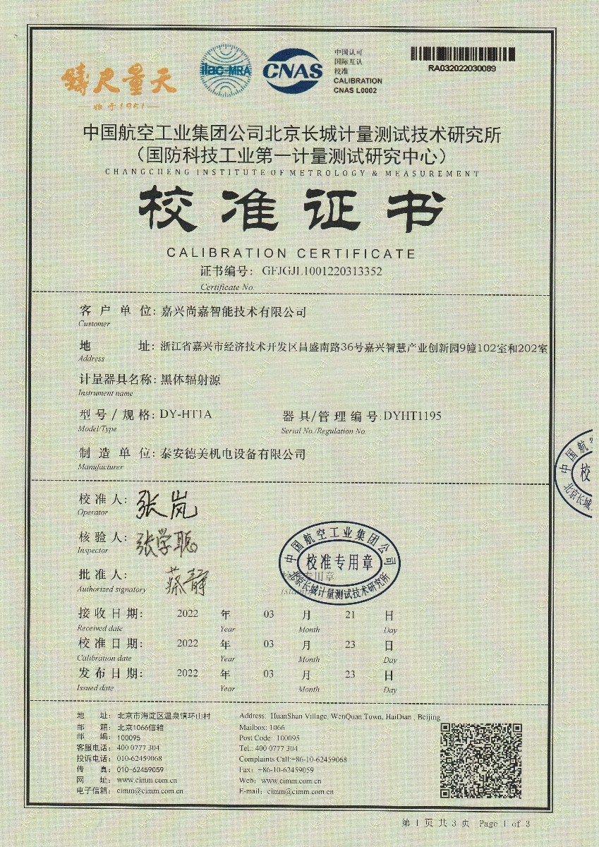 嘉興尚嘉智能技術(shù)有限公司-黑體輻射源(DY-HT1A) 2022-3-29 本文被閱讀 14132 次