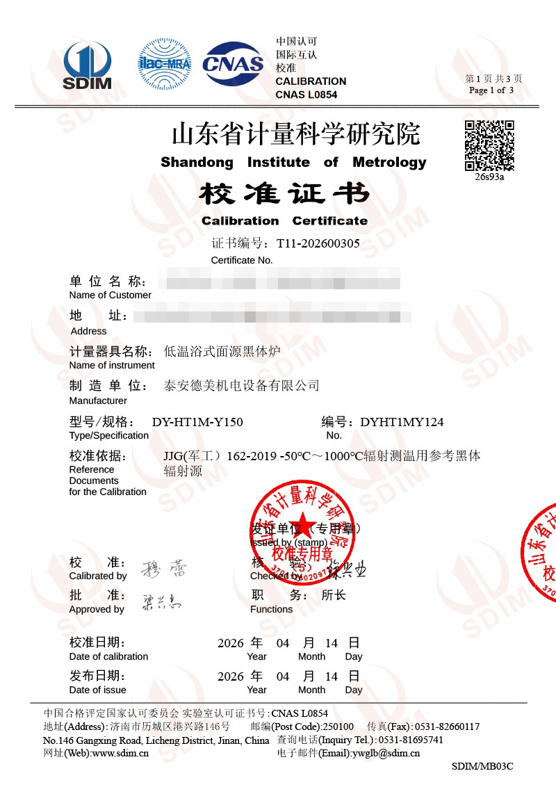 低溫浴式面源黑體爐-校準(zhǔn)證書 2026-4-20 本文被閱讀 66 次