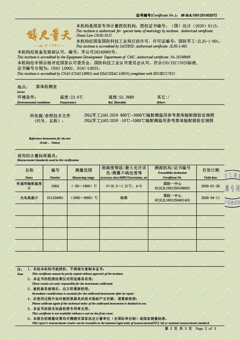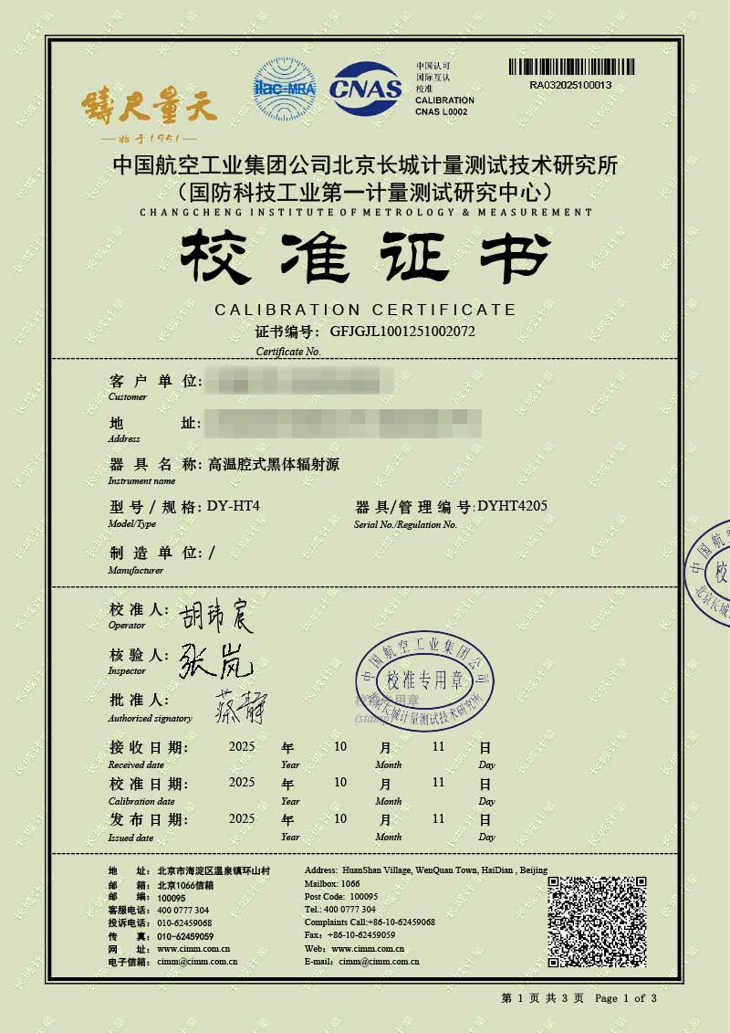 高溫腔式黑體輻射源(700-1600℃)校準(zhǔn)證書 2025-10-30 本文被閱讀 1875 次