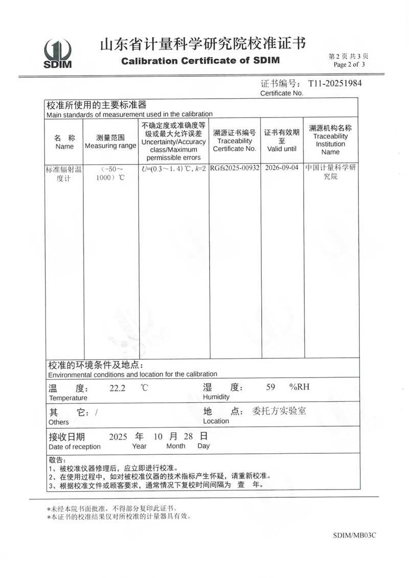 | 上一條:中溫黑體(室溫+5~400℃)校準(zhǔn)證書(shū) | 下一條:廉金屬熱電偶檢定爐-校準(zhǔn)證書(shū) |