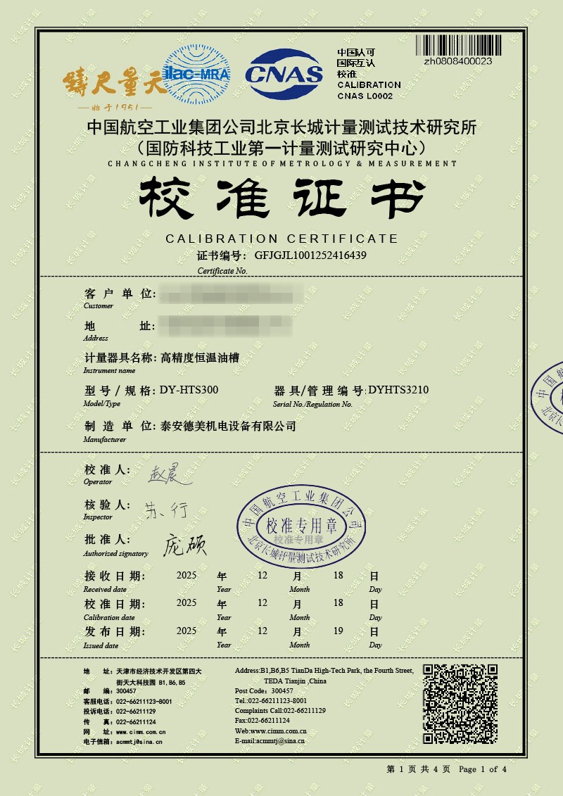 高精度恒溫油槽-校準證書 2025-12-19 本文被閱讀 1508 次