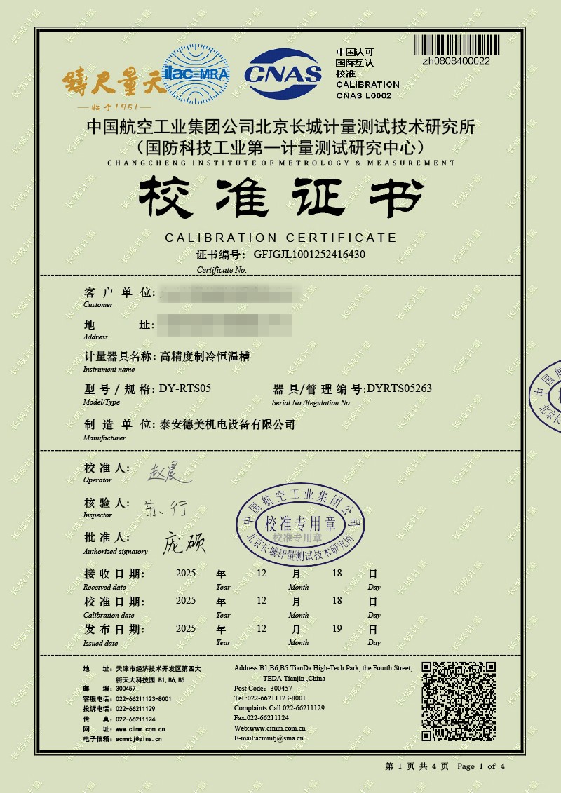 高精度制冷恒溫槽(0~100℃)-校準(zhǔn)證書 2025-12-19 本文被閱讀 1688 次
