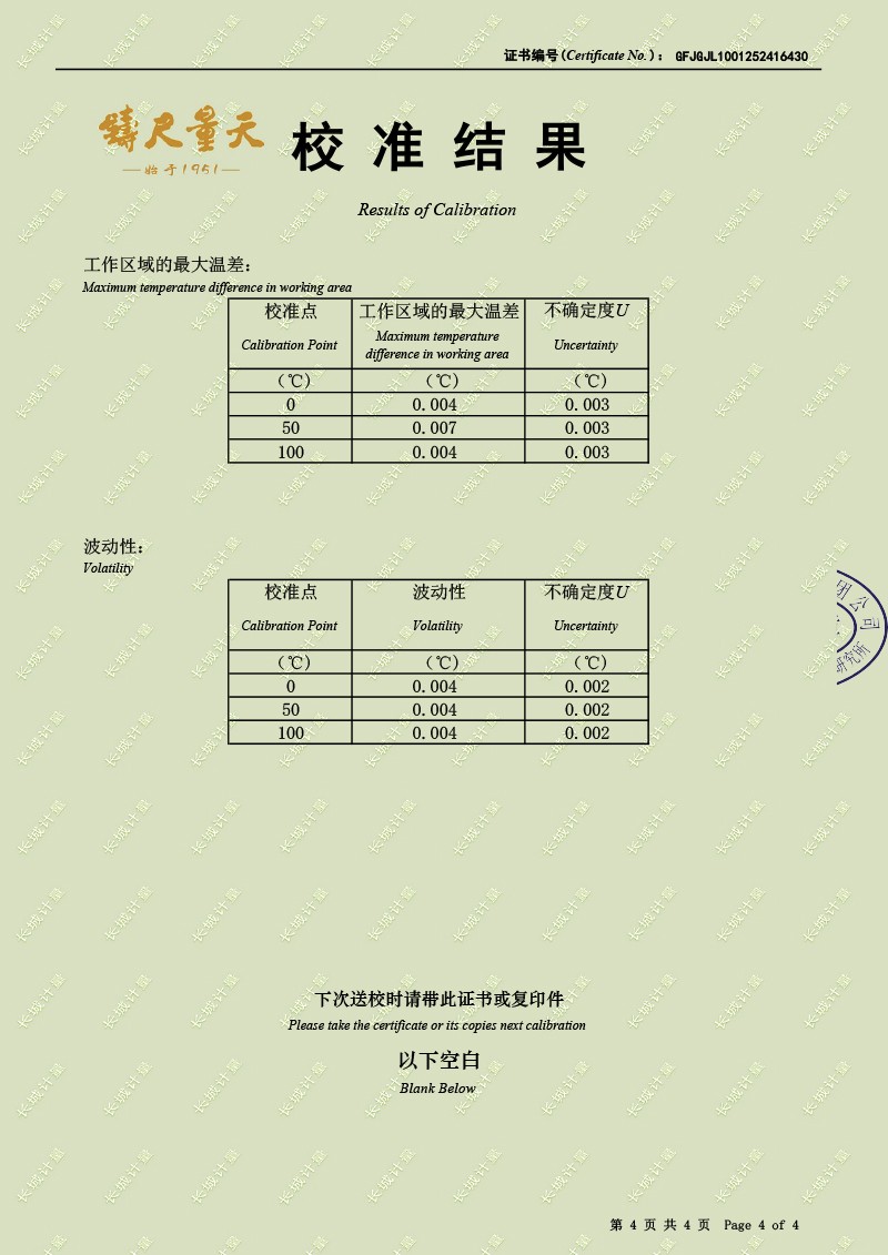高精度制冷恒溫槽(0~100℃)-校準(zhǔn)證書